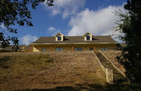 Beautiful home is approximately 3,000 sq. feet, with a 25 x 35 garage, plus an extra two car garage with a side slab for parking equipment. The home is built of limestone, designated rattlesnake rock because of the fossils imbedded in it. This is a well designed home with 3 bedrooms, 2.5 baths, one living area with a fireplace, a large kitchen, formal dining, separate laundry, and a sunroom over looking the valley below. The library is big and could be used as an office or a second living area. The house was built with lots of attention to detail. The floors are a mix of wood, tile and carpet. There is crown molding throughout, plenty of large closets, and lots of cabinets in the kitchen.