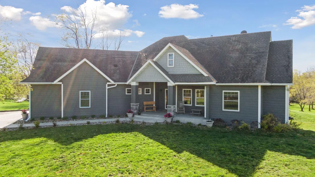 This 2015 built rambler sits on almost 10 acres just outside the city of Mound. The property offers an open main level with three bedrooms and walkout access from the kitchen to the covered deck with beautiful long views. Retreat to the primary bedroom that features a tray ceiling, two walk-in closets and bathroom with separate tub and a tiled shower. The junior bedrooms share a full jack-and-jill bath. The kitchen features high-end stainless-steel appliances, hardwood floors and a large center island. The two-sided stone fireplace separates the formal dining room from the living room. There is a main floor office and guest bath just off the foyer. The laundry room is conveniently located and features built-in lockers and has ample storage. Heated floors throughout the lower level with two bedrooms, family room, amusement room and plenty of storage. Don't miss the bonus room tucked away on the upper level. Easy county living with proximity to shopping, restaurants, and schools.