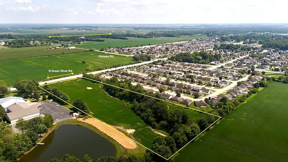 Located in the heart of McCutchanville, one of the most rapidly developing regions in Southern Indiana, this 9.51+/- acre tract offers an outstanding opportunity for future use in residential or commercial development. Positioned on the west side of North Green River Road, just north of Kansas Road and between Highway 57 and Interstate 69, this property provides easy access to major transportation routes and regional infrastructure.This parcel features approximately 370 feet of frontage along the southbound side of N Green River Road, including a 40-foot-wide existing driveway approach that offers immediate access to the site. Essential utilities are available along the frontage, including 69KV overhead electric service, water and sewer line access, and AT&T fiber optic servicemaking it a viable location for future development.Of the total acreage, approximately 8.3 acres consist of high...