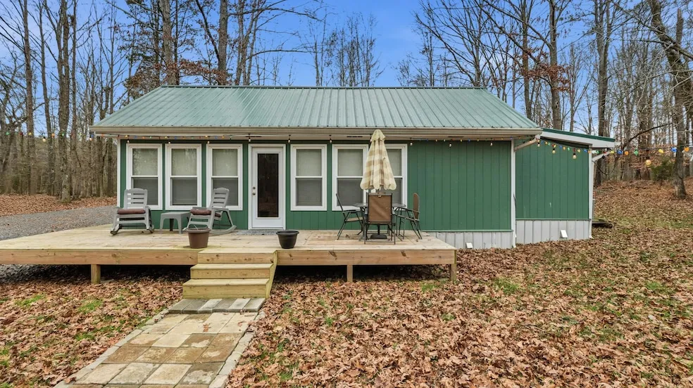 Discover your own private Tennessee retreat on nearly 10 acres of flat landscape, where privacy, serenity, and simple living take center stage. This 640-sq-ft home is thoughtfully designed with beautiful wood ceilings, an abundance of windows that flood the space with natural light, and an open-concept layout that combines the kitchen, dining area, and living area into one welcoming space. The home includes 1 bedroom and 1 bathroom, offering an efficient and comfortable floorplan that feels larger than its footprint. The property is designed for true outdoor living. A walking trail wraps around the entire acreage, giving you your own private loop for morning walks, scenic hikes, or peaceful moments away from the noise. The land features a beautiful mix of open clearings and wooded sections, along with a seasonal creek that adds movement and charm throughout the year. When evening settles...