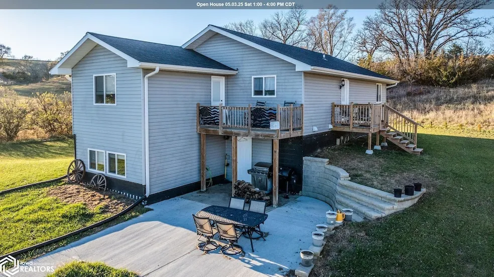 Here is a rare opportunity to purchase a one-of-a-kind acreage. This 9.57 acre property with a 6 year old home has many self -sustaining features. There is an established orchard, berry beds, pristine raised bed garden, rain water collection system and garden shed. The 3 bedroom, 2 full bath home is designed with high R-value, thick insulated walls and ceilings. The electric furnace with reduced heating rate includes a heat exchanger. The hickory wood kitchen is so inviting with the large island, built-in coffee bar, and walk-in pantry. The kitchen is open into the diningroom and living room. A door out of the living room goes out to the Juliet balcony for a nice sitting spot to view the property. Also on the main level is the laundry room, master bedroom with walk-in closet and 2nd bedroom. The lower level could be used as a second residence. It includes a full stainless steel kitchen, large walk-in pantry, full bath, possible 1 or 2 bedrooms. and a family room. The 2 -car garage is 28' x 24' and the chicken coop comes ready with a fenced-in pen. The rest of the property remains wooded for wild life viewing of wild turkey, deer, pheasant and hunting. New septic system. Re-habbed well with UV filtration system. Over 80 new evergreens have been planted on this property. Come take a tour and walk back into the timber to check out the deer stand.