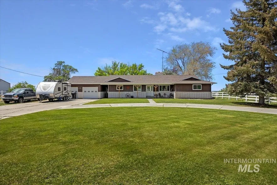 Rare opportunity to own acreage in the country with a home and a large shop on almost 10 acres that is subdividable and close to town! Beautiful views of Western Magic Valley off the covered back deck! Choose how you would like to use these two parcels, it is set up for a small farm. The home has a nice, large kitchen, with a brand new SS cooktop and vent hood, lots of storage, a living room and a bonus room, both with fireplaces. The 4th bedroom can be an office or a bedroom. Oversized 2 car garage with a breezeway to the home. The shop is 30x50, has electricity, concrete floor and a large door potentially for a semi or a tractor to fit. There is also a storage shed that is included!