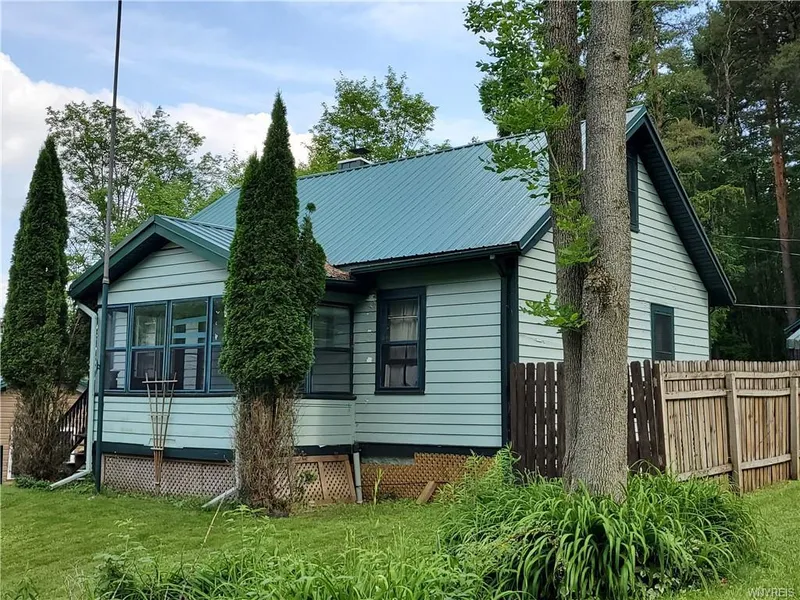 Perfect for the outdoor enthusiast and priced under assessed value! This 1 bedroom/1 bath Cape has a full basement, additional sleeping space in the finished attic and is situated on just under ten acres of wooded property with deeded access to Java Lake. Hunt, hike or ride the trails in the woods & swim, fish or boat on the lake. You have it all! The interior includes an eat-in kitchen with appliances, a large living room with wood burning fireplace, 2 bedrooms, enclosed sun porch and walk-in attic. Exterior features include a storage shed, nice landscaping and 9+ wooded acres. Also, updated 100 amp electric service plus a new steel roof in 2008. Basement needs foundation work. Showings begin immediately. Negotiations are delayed and offers are due by Saturday July 10th at 2PM.