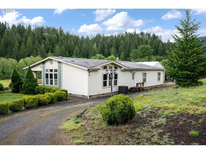 An incredibly rare and private 9.7 acre farmstead with two homes on a single tax lot, perfect for multigenerational living, rental income, or peaceful country living with extra space to spread out. Tucked away in a serene, secluded setting with a creekfront view, this property offers the best of rural charm and modern convenience with fiber optic internet available in both homes. The original home is a single-story, stick-built residence featuring 3 bedrooms, 1 bathroom, and approximately 1,400 square feet of living space. Surrounding it, you'll find a detached garage/carport, side room built near the garage, greenhouse, raised beds, a tool shed, barn, and workshop ideal for hobby farming, gardening, or storage. The second home is a spacious 2,241 square foot triple-wide manufactured home with 3 bedrooms and 2.5 bathrooms. It boasts a large additional family room with a wood-burning fire...