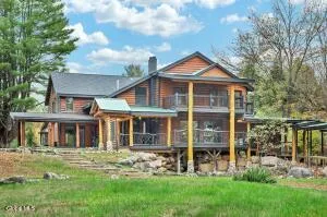 Discover the pinnacle of Adirondack elegance with this unique and extraordinary sprawling log home. Nestled on 10 lush acres with a pond, pickleball court, and 6bay open stall shed. Escape for privacy but rest assured this wooded oasis is just 20 minutes to Gore Mt ski center,12 minutes to the hub of Warrensburg & 20 minutes to the shores of Lake George. This expansive log home boasts a remodeled & professionally decorated home ready to host the holidays! Chefs kitchen with 2 tone cabinetry, stone counters and butlers pantry. Custom bar and field stone fireplace in the back living room. Exquisite formal dining with log walls and designer inspired wall paper. Mudroom complete with built ins. Soaring ceilings in great room with stone walls and new pellet stove. Private first floor office and stone walled sunroom all with large windows and atrium doors to take in that view!! Luxury primary ...