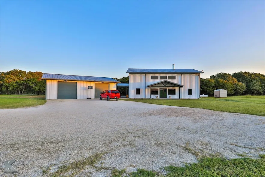 *Motivated Sellers* Escape to peaceful country living in this spacious 3-bedroom, 3-bath barndominium home, perfectly set on 10 serene acres. This well-designed home has modern amenities, making it ideal for comfortable living and entertaining.Step into the stunning living room with soaring 26-foot ceilings and a wood-burning fireplace with a gas starter. The open-concept layout flows seamlessly into the chef's kitchen, featuring a large island with ample storage, a GE Caf gas range, and a walk-in pantry complete with electric outlets for all your small appliances.The primary suite offers luxury and privacy with his and her sinks, a walk-in closet with a central island, and a spa-like wet room. A secondary suite upstairs provides additional comfort for guests or family members. The home also includes a versatile safe room, a laundry room with a dog wash station, and a tankless water hea...