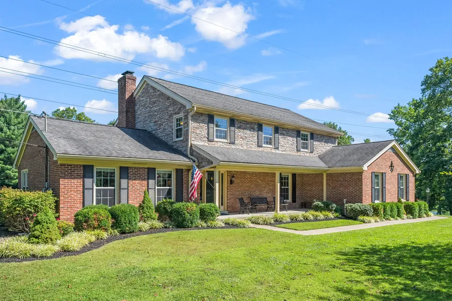 Situated on ten sprawling acres of Kentucky's lush landscape, this inviting home offers a quintessential Bluegrass Country lifestyle. The gentle roll of the hills and the rustling of the trees create a serene backdrop for your everyday life. Located just minutes from Blackacre Nature Preserve, Jeffersontown, I-64, and I-265, you'll enjoy the best of both worlds—proximity to bustling urban amenities while still relishing the peace and serenity of the bluegrass countryside. Bask in the beauty of this property, framed with four post fencing, from the comfort of the covered front porch or the rear sunroom overlooking the horse pasture. An open foyer welcomes you into the home, leading you into a spacious family room featuring a brick gas fireplace and panoramic views of the sprawling front, side, and rear yards! The heart of the home is the spacious kitchen, perfect for family gatherings and entertaining friends. High-end appliances, granite countertops, and ample storage make cooking a breeze! You will love the walk-in pantry for additional storage. A dining room adjacent to the kitchen allows a seamless flow for hosting dinner parties while the kitchen offers island seating and a breakfast area for a more relaxed dining experience. Indulge in the year-round beauty of the seasons from the inviting sunroom, a space that seamlessly connects the indoors with the outdoors. This sun-soaked room offers a perfect spot to enjoy morning coffee or to unwind with a book. A full bathroom can be found on the main floor for added convenience. The laundry room and a mud room area connect to the large attached 3-car garage. Upstairs, three spacious guest rooms await, offering endless possibilities. A full bathroom is conveniently located nearby to service your family members or guests. A generous primary suite, complete with ensuite spa-like bathroom and oversized walk-in closet, and private views of the luscious green backyard, feels like a retreat. A stairwell to a cedar closet and attic storage can also be found in the primary bedroom-giving the new owners opportunity to expand the primary suite, if desired. The spacious lot provides the new owner other possibilities for expansion. The partially finished basement is a blank canvas waiting for you to make this space your own. A wood burning fireplace is the centerpiece to a family room or recreational space. The unfinished area of the basement features shelving for your storage needs. The attached 3-car garage offers an additional workspace and further storage opportunities. Cool off and unwind in style with your own heated in-ground pool. Whether you're enjoying a leisurely swim on a hot Kentucky summer day or hosting poolside gatherings, this pool is a focal point of enjoyment. Adjacent to the pool, a serene pond with fountain water feature adds to the property's charm, offering a backdrop peaceful reflection. Stocked with largemouth bass, blue gill, and crappie, you will love having your own private fishing spot. For those with an equestrian inclination, the well-appointed horse barn, complete with a horse run that allows horses to roam in the pasture or seek shelter in the barn at any time, a tack room, and additional space for mowing and farm equipment, is a wonderful amenity. With 10 acres at your disposal, the possibilities are limited only by your imagination. Whether you dream of expanding the equestrian facilities, cultivating gardens, or simply enjoying the vast open spaces, this property offers the canvas for your ideal Kentucky lifestyle. This remarkable property offers a lifestyle of serenity and luxury, perfect for those seeking a peaceful retreat without sacrificing modern amenities.