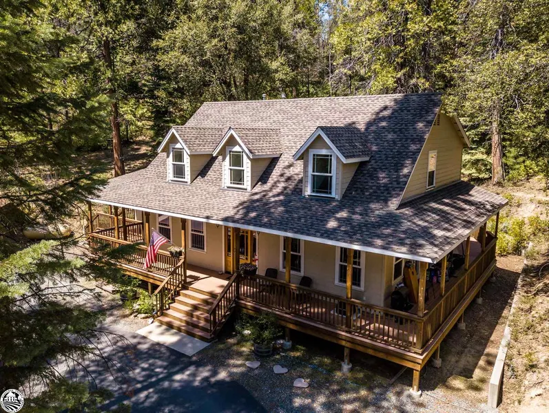 RARE opportunity to own nearly 10 private acres of paradise near iconic Downtown Twain Harte, California. Retreat to the Sierra's and enjoy the slower paced life of Tuolumne County, offering an abundance of outdoor recreation, the arts, festivals, and more. This gorgeous home is only 11 years old and has a timeless elegance, with it's wrap around trex deck, dormers, and natural curb appeal. It offers 4 bedrooms and 2 1/2 baths with 2,700 square feet of living space. The 2nd fully permitted unit is over the 3 car garage with it's own optional private driveway and parking, offering an additional full living space and 1 bedroom and bathroom. Driving up to this home is a true treat, as you are welcomed by the beauty of both the home(s) and the tranquil trees and surroundings. This home has been lovingly maintained. The property itself offers walking/driving trails and has so many possibilities for other uses. A creek meanders through the bottom side of the property. Parking for your toys, room to garden... it's all here and it can be yours. The layout of the home is quite functional, with the living room, kitchen, study/family room, 1/2 bath and master on the main floor. The vaulted ceilings in the living area/great room combined with the large windows looking out to the trees, the open concept to the kitchen and dining with french doors out to the deck make this area the perfect place to gather or entertain. The kitchen, with it's hickory cabinets, farmhouse sink, gas stove, double oven and breakfast bar offers the perfect amount of counter space. Storage? This home has an abundance of storage! The windows and doors are all handsomely wood trimmed. Each bedroom upstairs is substantial in size! 2 have walk-in closets. One has an en-suite bath that is also accessible from the guest hallway. The cement board siding is a wonderful feature, being pest and fire resistant. The unit above the garage matches the main home, down to the walk-in closet, only smaller! The perfect charming guest quarters, mother-in-law, or rent it out! In addition to wood, central heat is available. This home is on septic and well water. This gem will not last long! Make your appointment today! For showing guidelines go to: https://tcrealtors.org/wp-content/uploads/2020/05/All-Entrants-Notice-and-Pictogram-Sign-52620.pdf