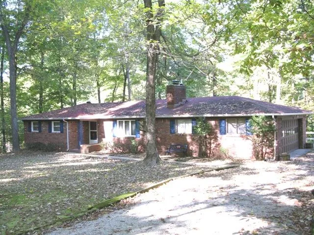 REDUCED!Almost 10 acres with quiet woods and some open pasture at the end of paved county road. There are pretty wood floors in hallway & mstr br; sitting room, full + half bath. Woodburning fireplace in living room. 2 ventless propane heaters. 19x18 family room opens onto big 31x12 screened porch that looks out on the valley behind. Att. 2-c garage as well as 2-c det. garage that is 2 cars deep--electricity/workshop area/great place for a collector. Det. building for use as office plus storage