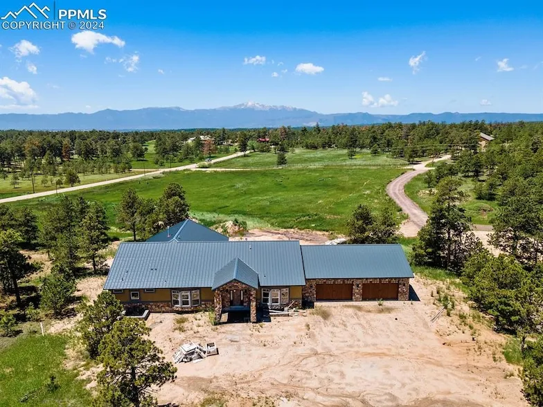 Remarkable opportunity in southern Black Forest!! Great potential in this new build ready to be completed. Finished so far with the highest of quality, with an unfinished, but framed in walk out basement. Main level needs a bit more tweaking before move in, it consists of great room with wet bar and hearth area, formal dining, large laundry, walk in pantry, and complete chefs kitchen. Main level also consist of secondary bedroom en suite, half bath, master retreat with double closets, and a spa like bath. All over looking approximate 10 fenced acres, with a perfectly framed view of Pikes Peak. Plus, large mature ponderosa to the back. The basement walkout is framed for a large family room with fireplace, plumbed for wet bar, 2 additional on suites, full guest bath with double sinks, 2nd laundry, utility room, and an amazing flex room. This hard to find 9.9 acre parcel is located in d20 ...