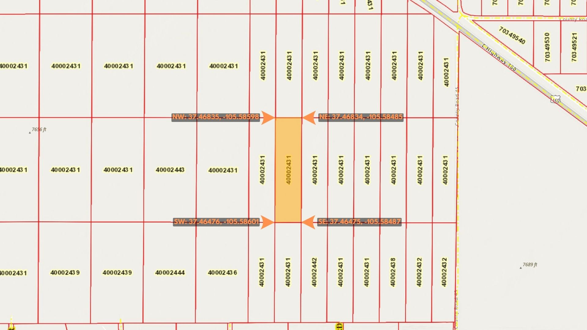 Southeast Corner: 37.46475, -105.58487