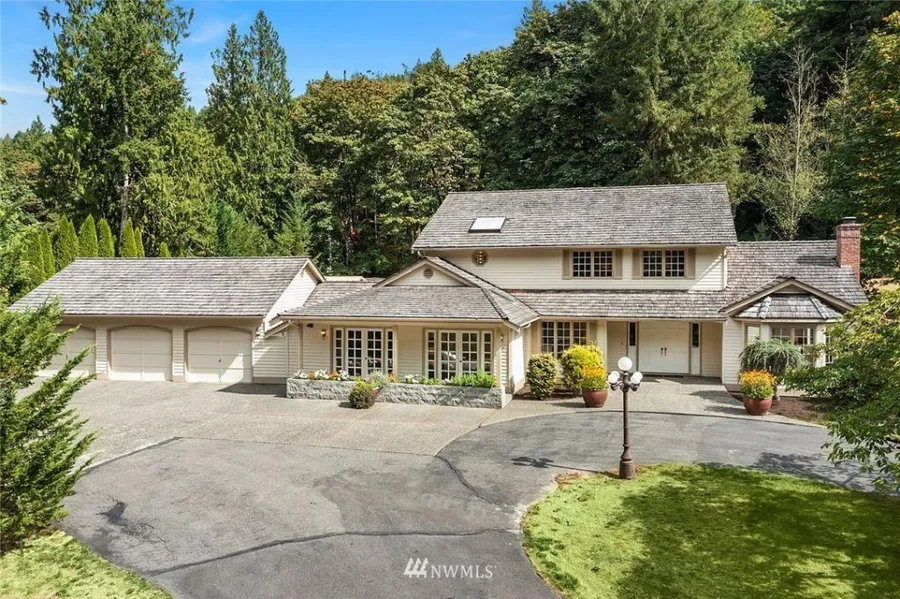 Rare opportunity to own a coveted shy 10-acre retreat on historic Red Brick Road. Versatile floor plan with 2 master suites, 1 on the main with French doors to the porch & 1 up with sitting area & 5-piece bath. Spacious living/dining with large windows to showcase the gorgeous grounds. Granite kitchen with brilliant hardwoods & newer stainless appliances. Generous family room opens to the kitchen & oversized patio - ideal for entertaining. 2 dens+extra finished room. This one-of-a-kind property delivers a picturesque setting with expansive lawns, mature trees, covered patio, inviting circular drive & covered porch. A private oasis just min to amenities including Redmond Town Center, Microsoft, popular Perrigo Park, much more! 2 tax parcels