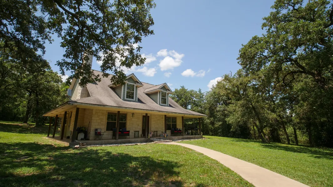 This property has something for everyone! A quaint, 1,768 square foot, 2-story home sits almost 40' above the gated entrance off of CR 264! With 3 bedrooms and 2 baths, it has room for the entire family. The white-rock exterior home features wrap-around porches, nice patio/deck area, and serene views of scattered post oaks. The interior has been updated and is highlighted by granite counter tops in the kitchen, tile flooring, and tall fireplace! This home was built in 2003 and is very energy efficient. The 3 bedrooms offer ample room, and the master bath has a garden-style tub and walk-in shower. Two bedrooms are downstairs, with the master upstairs. The property is accessed via an electric gate and has an asphalt driveway in place. The concrete back patio area offers a great place to grill or enjoy evenings by the fire. A water well is also in place, along with one storage building.