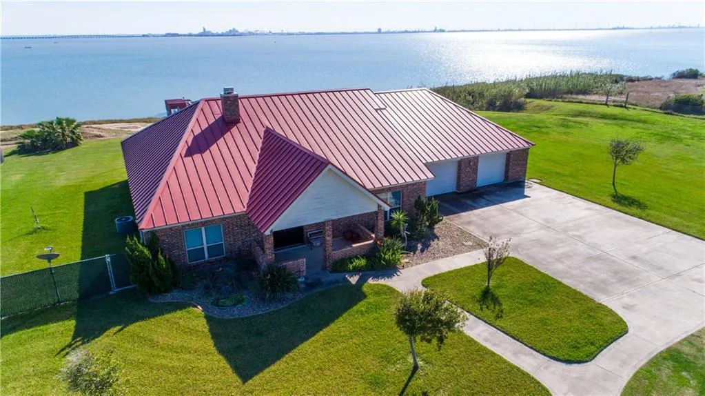 THIA IS A RARE FIND; Huge family home on almost 10 acres with a view of Corpus Christi Skyline from almost every room in the home. It has the primary bedroom/Full Bath w/ walk-in Shower & 1 large office downstairs with a large kitchen w/ 3 pantries, dinning, living & 1/2 bath. Upstairs are 2 Bedrooms & a Full Bath. The covered back porch is the full width of the home. It has an oversized garage & a 50' x 40' metal building with water & electricity. 170' Long Pier and a boat barn down at the fishing dock with a boat lift & fish cleaning station. You really need to check this one out. This property is one in a million with a Million Dollar View! & lots of Potential.