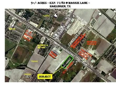 +/-9 Acres with 386' frontage along Expressway 77/83. Site has 1,078' on Maggie Lane. Front 8 Acres are in pasture and house & shop occupy back acreage. All utilities are available in close proximity. Excellent site for hotel, restaurant, medical development. Build-To-Suit possible.