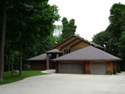 This 3 bedroom open concept home features a kitchen with built ins, pantry, walk out deck, 1/2 bath, dining area, large living room with stone fireplace, formal dining room, master suite with large walk in closet, bath with whirlpool and shower stall and patio door to deck. Upper level has 2 bedrooms and a full bath. Lower walk out level has family room with fireplace, office area, 1/2 bath, storage and utility room. There is a 3 car attached garage and concrete patio. Outside there is a 32' X 58' heated pole building with 3 - 12 ft. overhead doors. Property also has a large pond and the pier is included!