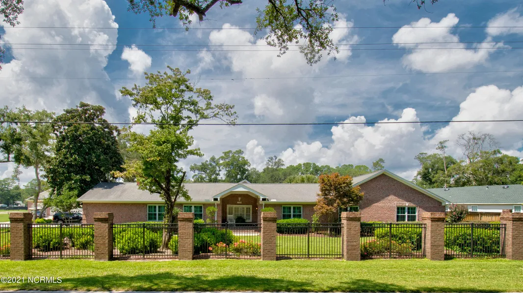 9 acre estate/ horse farm completely fenced with many corralled pastures. Large barn includes 5 horse stalls, a tack stall and a feed stall. Also on site is a smaller barn. This open airy floor-plan home has been completely renovated and updated. It includes large eat-in kitchen, spacious living room, formal dining room, game room, a huge master bedroom with gas log fireplace and trey ceiling with mood lighting, three additional spacious bedrooms, and an office with beautiful wood built-ins. Three renovated bathrooms with a whirlpool in the very roomy master bath. This private resort boasts an inground heated/cooled salt-water pool surrounded by lush landscaping, covered patio, an outdoor kitchen area with a stylish pergola. The 3500 SF home has a encapsulated climate controlled crawl spacious with foam insulation underneath and in the attic. Buried propane tank powers the gas oven, water heater, and the master bed fireplace. The oversized 3 car garage with workshop areas has a full apartment above it (perfect for an Air B&B). If the oversized 3 car garage is not enough for you, there is a 2 car garage attached to the house by a breezeway, but the absolute crowning glory of the estate is a all brick 8500 square foot two story garage, which has 3 bays in the front (one is 14 foot) and add'l 4 bays in the back. The garage upstairs is for storage - the entire length of the structure. The entrance to the estate is flacked the length of the 541 foot road frontage with brick piers and wrought iron fencing with a grand double gate to enter this magnificent property. To the left of the entrance is a pond with a pleasing relaxing fountain in the center. A second pond can be found in back of the estate. Plenty of parking for large gatherings on the concrete driveway leading up to large garage and on the circular driveway. Minutes from the beach. List price includes adjoining lots at 7704, 7708, & 7714 Myrtle Grove Rd for a total of 9.0 acres. Must be pre-approved to view