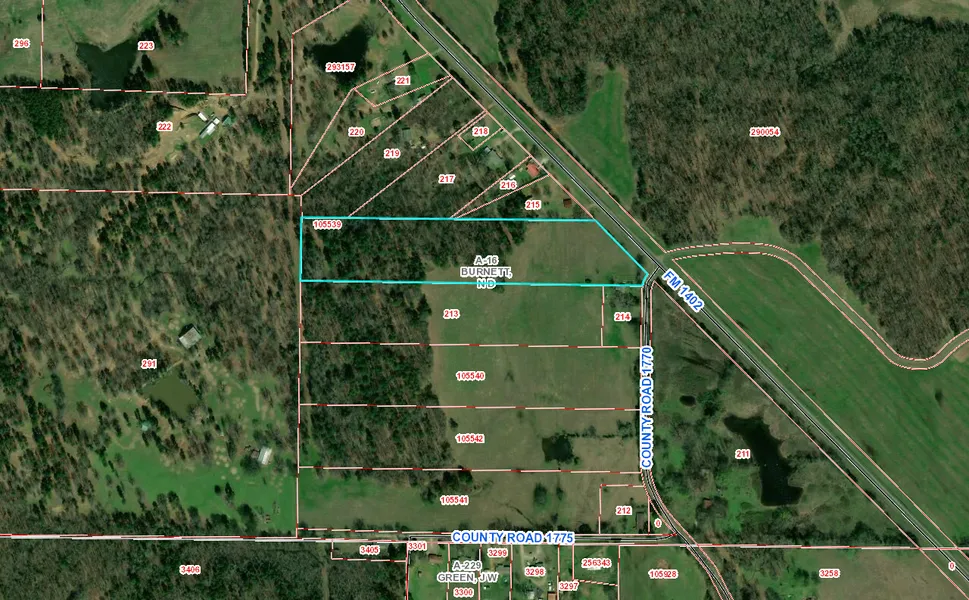 Approx 9.4 acres located North of Mt Pleasant, on the corner of FM 1402 (Harts Bluff Road) and CR 1770, ideal for building your new home or for small ranching operation.