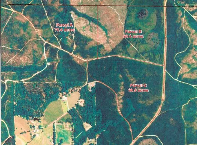 PARCEL B - mostly level tract with trail system and country road frontage. T3N R8E S5,6