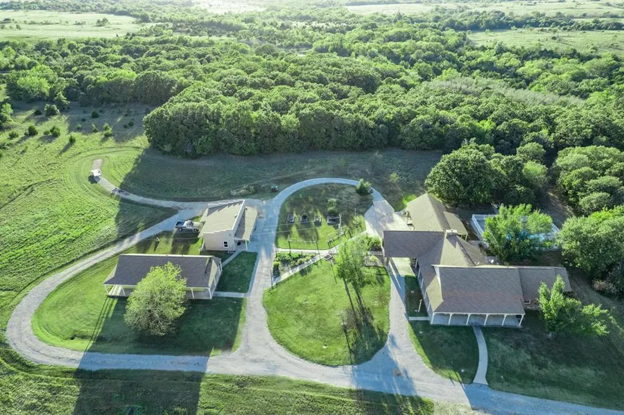 Sitting on 90 acres +/- The Dancing Bean Ranch is a beautiful property located just west of Pawnee. As you travel up the driveway you will be taken in by the breathtaking views of not only the country side but the beautiful custom ranch style home with wrap around porch, guest house, and unique shop building. No expense was spared and every detail was thought of when designing these buildings!