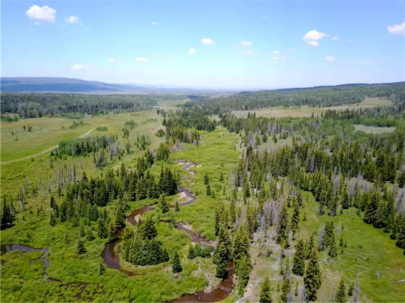 The Hidden Bear Ranch is located on the North Slope of the Uinta Mountains, at 8,350 to 8,850 feet in elevation. The ranchs broad and gentle alpine valley has 1.5 miles of Mill Creek running through it, with water rights to flood irrigate large portions of the valley. Mill Creek offers excellent fishing for Native Cutthroat Trout, and the ranch recently received a grant and is currently undergoing a significant stream restoration and fisheries improvement project being done by a partnership between Trout Unlimited, the Utah Division of Wildlife Resources, the US Fish & Wildlife agency, and Utah State University. The gentle alpine landscape is an ideal mix of pine, aspen, open meadows, and river bottom. Tremendous elk habit, with a major concentration of elk occurring on the ranch during the fall rut, pushed there from the adjoining National Forest or the large CWMU to the ranch's north, which are hunted more heavily than are the elk on the Hidden Bear Ranch. Elk tags are over the counter. Trophy mule deer are also found on the ranch, and the ranch is in a general season deer unit. The base zoning allows for up to 11 subdivided lots if development is pursued. For the conservationist, the ranch is a prime candidate for a conservation easement. No conservation easements are in place yet, which leaves all the tremendous tax benefits of that possibility to the next owner. Some of the most aesthetic yet usable alpine land found in the state of Utah, it truly doesnt get any prettier than this land.