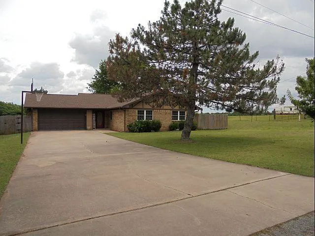 PENDING! Comfortable, with privacy. is a good way to describe this 3 bedroom, 1 bath brick home. Large open living room flows with the dining & kitchen area, country style cabinetry in kitchen, with built in dishwasher and Maytag gas stove. Laminate wood flooring with carpet in the bedrooms. Ceiling fans throughout the home. Spacious 2 car garage with tons of shop storage. Large backyard with covered patio and storage shed. This is a well-made home, perfect for the first time buyer.