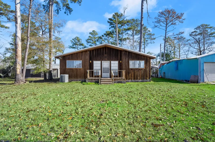 Come take a look at this well maintained 2-bedroom 1 bath home in the Yaupon Cove subdivision. The home has a rustic wood look on the exterior with a back porch that is the full length of the home. There is a 2-car detached oversized garage that is about 720 sq feet. You will have plenty of storage with the 2 sheds in the back yard. The interior has high ceilings in the living room with a stone fireplace and the kitchen has plenty of cabinet space. The subdivision has access to Lake Livingston where you can enjoy water sports and fishing.