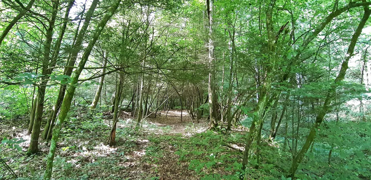 About 90% of the land is wooded. The woods are mainly red oak, tulip poplar, hickory and some white oak. This property has not been timbered recently, but there is probably not much marketable timber on it now. The timber rights DO go with the property, which is not always the case in West Virginia. The property is mainly sloping to hilly, but there are a couple of nice flats on the property that would make a nice cabin site or possible building site.