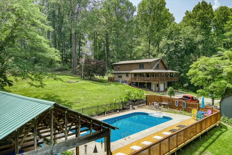 HONEST ABE LOG HOME WITH POOL, POOL PAVILION, ACREAGE, AND MOUNTAIN VIEWS!! A very well-maintained Honest Abe Log Home built in 1995 with 2 stories and a heated and cooled walk-out basement for a total of 3,616 sq ft. The main and upper levels include 2,272 sq ft, 3 bedrooms, 2 bathrooms, and a bonus loft area. 10.19 secluded acres with spectacular mountain views, a pool, and ultimate privacy. The deck and covered porch wrapping around 3 sides of the home were recently stained in 2025. Underground utilities from the road to home. Natural gas range/oven, HVAC (natural gas heat/electric cooling, 2020), new gas water heater (2025), and new asphalt shingle roof (2020). Interior features include hardwood and laminate flooring, cathedral ceilings, tongue and groove ceilings, and exposed beams. In-ground 20'x40' pool (35,000 gallons) with Nature II ozone pool system reducing chlorine usage. A diving board, ladder, pool cover (2025), newer liner (2024), pump/motor (2023), sand filter (2023), and chlorinator (2023) are also included. 580 sq ft sun deck (2025) with bar-height table and chairs and umbrella. The pool deck also included 7 lounge chairs. 760 sq ft pool pavilion with metal roof, Tiki Hut bar, swivel stools, lounge seating, gas fire pit, and a metal-coated picnic table. Outdoor storage shed and paved area for basketball or multi-use recreation Home located 1.7 miles from Exit 350 (Midtown exit on I-40). Excellent location close to Kingston, Rockwood, Oak Ridge, Knoxville, Flatrock Motorsports Park, and TVA. Buyer to verify all information before making an informed offer.