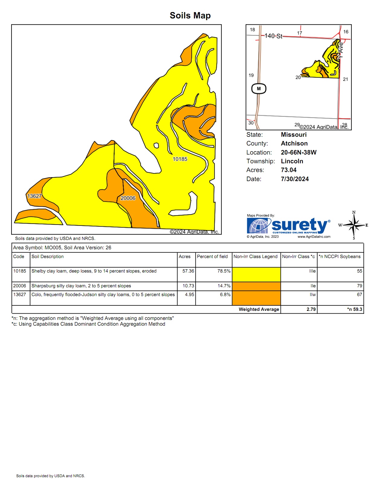 o Cash rent offer in place at $240/acre, generating $16,605 annually.