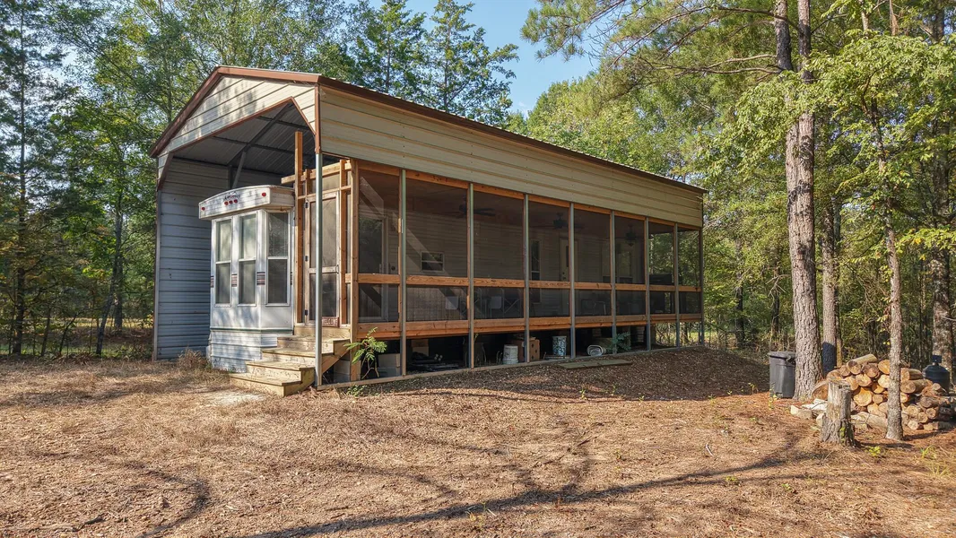 A park model camper with an added-on cover and screened porch is located on the property, providing a simple but functional place for extended stays. This setup allows for shelter during hunting seasons or recreational use and adds value as a base for future land improvement projects.