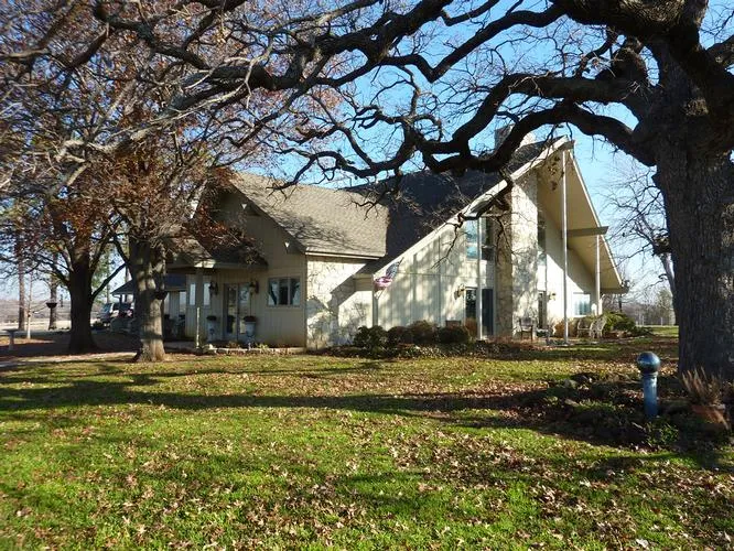 SEE FOREVER! - Magnificent views from this 92-acre hilltop ranch 35 minutes NW of Plano, Texas. Rolling hills with improved pastures, 4 ponds with good fishing, scattered hardwoods; pipe & 2X4 non-climb fencing. Beautifully updated with an addition completed in 2006-07. Gourmet kitchen with granite countertops, huge island, gas cooktop, double convection ovens; built-in refrigerator/freezer. Wet bar. Living areas with fireplaces. Fantastic master suite with private patio. Study. Separate guest house. 60X40 3-stall barn with large office and craft room. 54X36 equipment barn. 3-car oversized and heated garage. Very nice property!