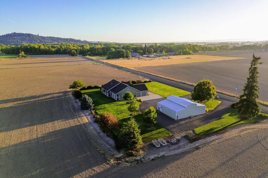 Two homes on 92.20 acres just minutes (2-mi) from Albany and I-5 access for easy commute. Custom primary home 2,731 SF built in 2006 with spacious living areas, oak cabinetry and granite countertops, formal dining, living room w/woodstove, private office w/separate entrance, and oversize attached 2-car finished garage with ample storage and finished bonus living space above garage. The home is wonderfully set overlooking the immaculate landscaped yard and not too distant foothills and Snow Peak providing gorgeous sunrise and evening scenes. 2nd home older farm house 1,872 SF built in 1930 (fixer). Both homes have separate wells and septic systems. 1,920 SF shop built in 2006, insulated, and room for RV. Circular gravel drive and parking area. 70-acres of tillable land currently in grass seed. Solar lease on 20-acres good distance from home site and provides extra income.