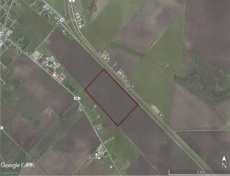 93.53 acres of Victoria Clay (VcA) farmland located along the IH-37 southbound access road, approx. one-half mile south of Mathis, Texas. 2,600+/- feet fronting the IH-37 southbound access road and 1,500+/- feet deep back to approx. 2,800+/- feet frontage with active railroad tracks. Soils are 100% Victoria Clay and very productive. Current tenant farmer would like to continue renting this and other surrounding acreages.