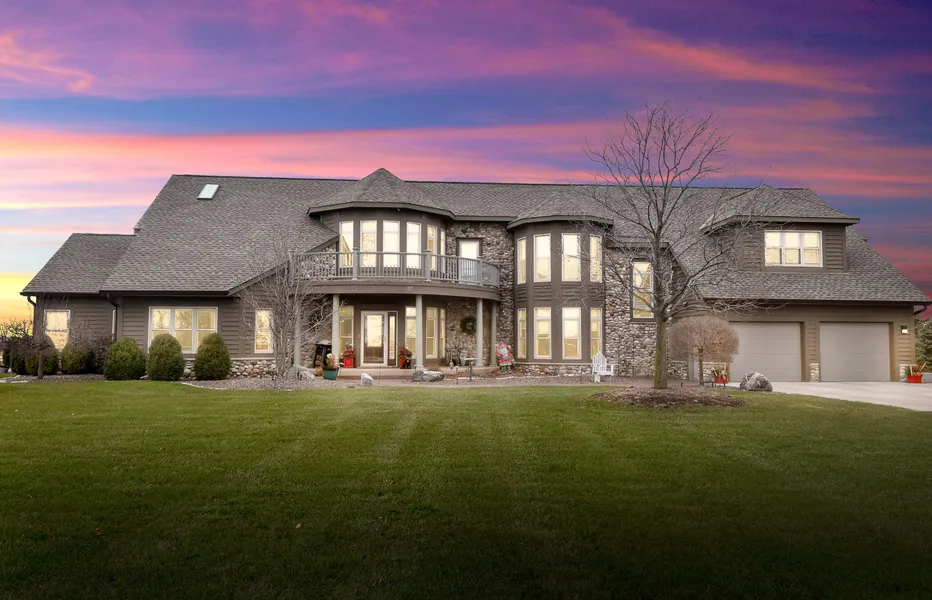 Escape from the demands of life with this stunning, serene 93 acre lake front estate! You will love the luxurious upgrades and incredible construction of this custom built 5 bed/5.5 bath 2 story retreat. A hand built curved oak staircase welcomes you into the open concept main level with spacious gourmet kitchen, formal dining room and gorgeous great room with spectacular two sided stone fireplace. Upstairs you will enjoy a dreamy primary, fireplace, two walk in closets and private deck overlooking the pool and lake. The En Suite features a steam shower and jetted tub. 4 roomy bedrooms and 2 full baths. Lower level with comfortable rec room, wet bar, work room and direct access to garage. 32 acre stocked lake, in ground pool, 2 heated outbuildings. Everything you have been searching for!