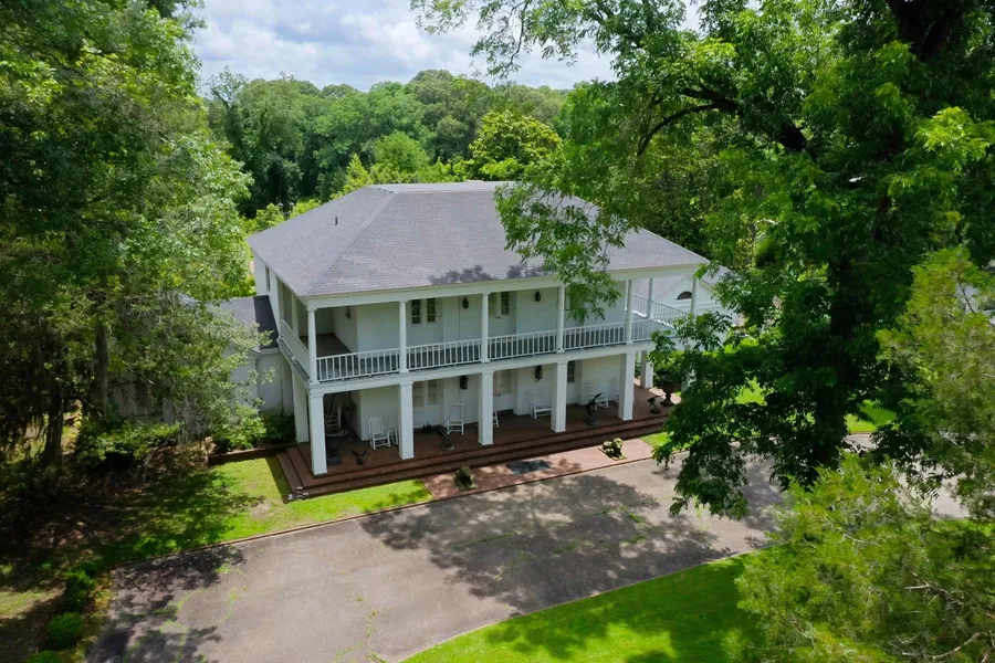 Main House: A grand Louisiana-style brick two-story home built in 1967, featuring 5 spacious bedrooms and 6 luxurious baths.