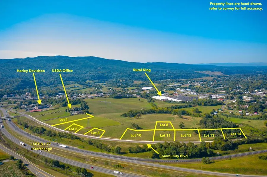 This is inarguably the most appealing piece of vacant commercial property in the area. Great visibility and quick access from multiple sides to downtown Wytheville mean this lot contains a vast amount of untapped potential. This is a prime opportunity and location for restaurants, hotels, entertainment venues, shopping and more. Your next business venture can thrive in a location like this one! With easy access from Exit 41 on I-77 and Exit 73 on I-81, along with direct line of sight to both interstates, where they combine/connect, means you can easily draw in crowds from all over. Schedule a showing today and dont miss out on this amazing opportunity!