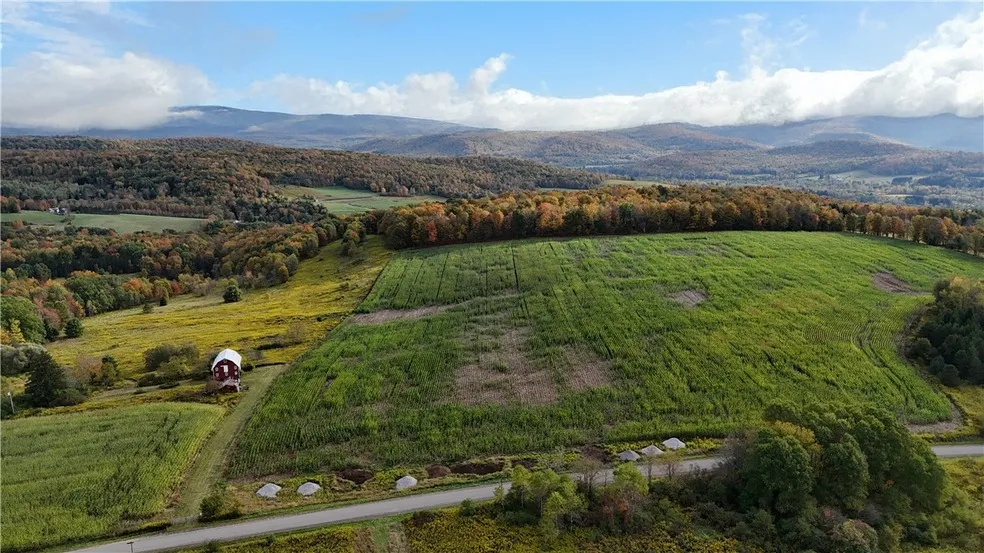 Mix of Farmland and woods, with a Spectacular view of the Valley. Local farmer is currently using the fields, and crops will be his to cut. There is a 31 x 41 Barn that has had some work done to it. Metal roof, partial basement level, main floor and Hay storage upstairs. The is an older home that is in poor condition, house was serviced by a spring -shed is scheduled to be removed.
