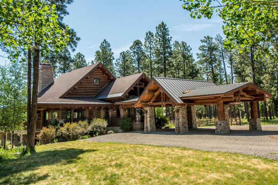 Exquisite Handcrafted full round log home on 62+/- acres in Hidden Valley Ranch. A creek runs through the property including into and out of the pond. Very private setting with incredible views of both North and East range of the San Juan Mountains. Sold fully furnished, including Pontoon boat for enjoying fishing on the private 55-acre lake in HVR, this recently renovated 3945 SF, 4 Bedroom, 3.5 Bath features 3 bay log Porta Cochere with copper gutters and handmade Elk Chandelier. One is welcomed into this magnificent home with high-end upgrades at every turn. Open great room with river rock Rumford wood burning Fireplace, 100 yr old reclaimed wood floors from a tobacco warehouse and handmade fallen antler chandelier over dining room table includes elk, moose, caribou, fallow and mule deer. Redesigned Gourmet kitchen includes Wolf gas range surrounded by custom dry stacked stone and rec...