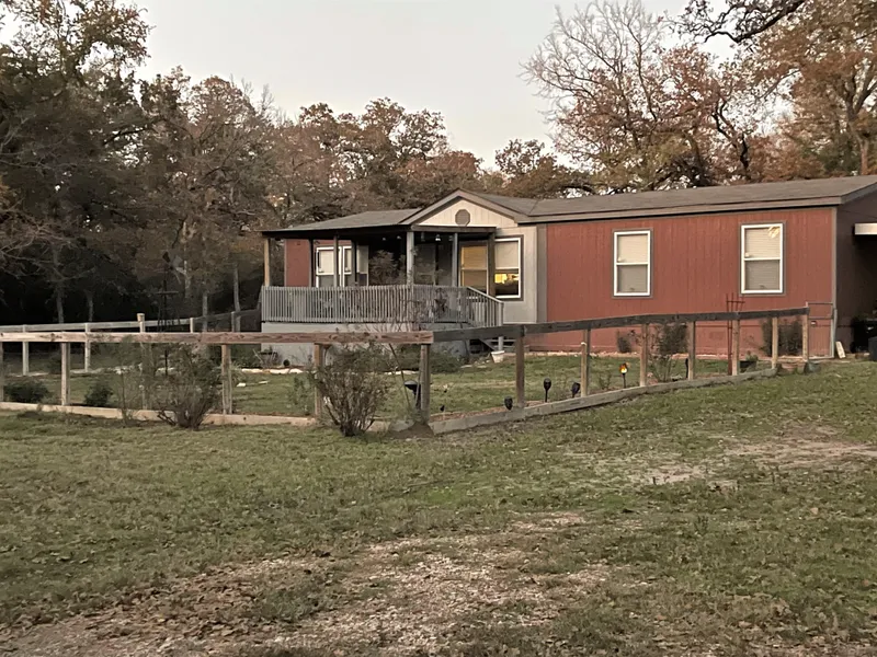 Beautiful partially wooded and private 7.27 acres with a 4 year old 3 bedroom 2 bath Oakcreek home. Detached carport and storage building included. The property is fenced on 3 sides with a fenced in yard. Located in the Iola community and Iola ISD, easy commute to Huntsville or Bryan/College Station. Community water, aerobic septic, and not in the flood plain. Shipping container can be purchased.