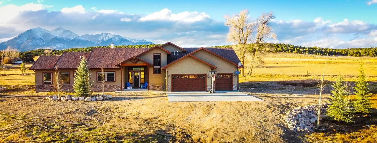 MAGNIFICENT VIEWS!! This custom home has 360 degree mountain views from every window/angle of this stunning, spacious home. Relax on the back patio and sip coffee while watching elk roam in the nearby hay fields. Cathedral ceilings and an open floor plan greet you to come in and cozy up or entertain for all your friends. Picture windows frame Shavano Mountain and showcase the stunning sunsets. The master bedroom suite is located on the main floor with an entry into the exercise/craft room, which features double doors and lots of light. The great room is full of character with a tongue and groove ceiling and a warm and inviting fireplace to curl up and watch the snow fall or sun shine through the big windows. The second floor hosts a large bedroom with a full bath for endless uses. Kitchen is open to the living room to serve and visit with guests or family. Walk-in pantry with plenty of custom shelving and large laundry room with utility sink, which leads to oversized three car garage. Bring your horses. Large barn with tact room ready to go. Home sits on CR 250, which is just minutes to the Shavano/Tabeguache Trailhead. You can ride your horse, ATV, or RZR from your garage to miles of outdoor fun and recreation. This home is truly a one of a kind!