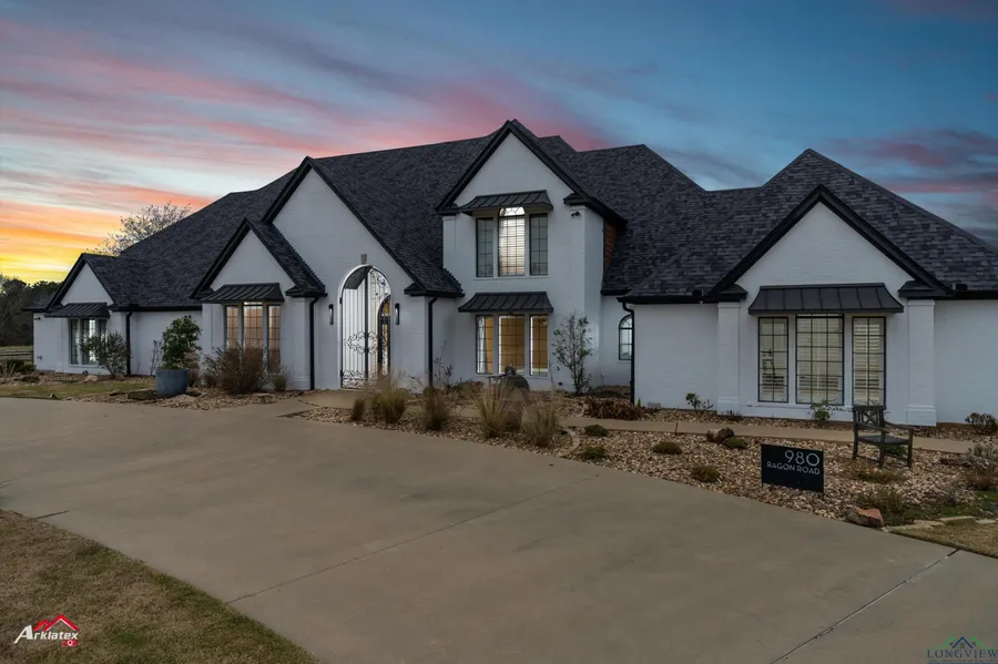 Welcome to this one-of-a-kind luxury estate in the heart of East Texas, set on an expansive 95-acre property in a top-rated school district. Boasting over 7,400 square feet of traditional elegance, this custom-built home offers 4 bedrooms, 6.5 bathrooms, and an array of luxurious features. Inside you will discover timeless hardwood floors, custom cabinetry, and granite countertops throughout. The oversized master suite includes a spa-inspired bath with a large walk-in shower and custom vanity. Designed for entertaining, the home features a game room, media room, and an inviting sunroom with breathtaking views of the property. The chef’s kitchen is a masterpiece, featuring high-end appliances, an expansive island, and copper farmhouse sink. With spacious rooms and an abundance of natural light, this home embodies luxury and functionality in every detail. Step outside to a private oasis wi...