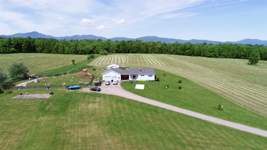 Country property offering 95 acres with great views and privacy. Nice 3 bedroom ranch with 1 1/2 baths, living room with field stone fireplace, open kitchen/dining area, front porch and back deck. Full basement with two more finished rooms. Attached 2 car garage and large storage building for outdoor furniture and big toy storage. Also included is a 2 bedroom mobile home with its own septic and well. The land offers about 60% open meadows and pasture and two ponds with the balance mixed woods - ideal for the wild life. Property is near Jay Peak and the Canadian border and a short drive to downtown Newport and Lake Memphremagog.