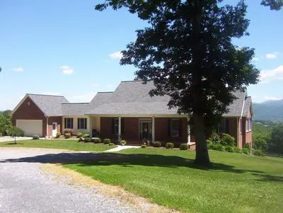 Enjoy beautiful sunrise over majestic Blue Ridge Mountains from this custom built brick home. The long driveway traverses to the private elevated homesite against large Oak trees with breath taking views of the mountains and valleys below. The farm has plenty of pasture for livestock as well as woods for wildlife.