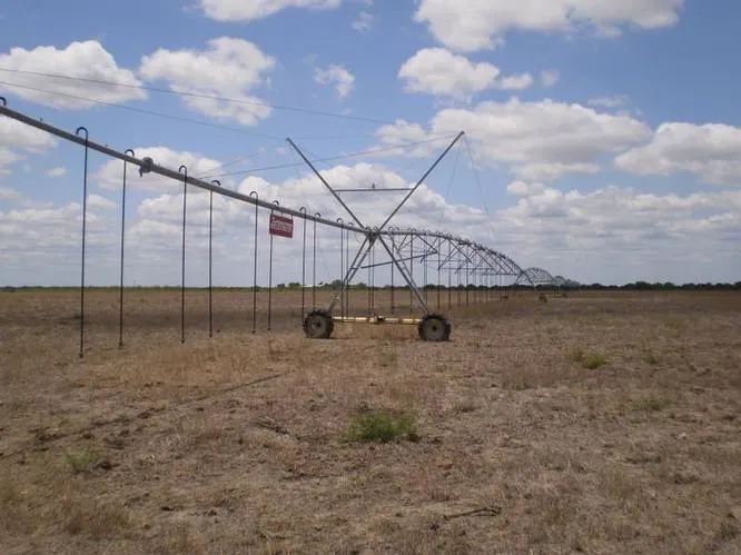 There is a large corrugated metal barn measuring approximately 60’ x 120’. It has sliding metal frame doors on both ends. The ranch also has a center pivot irrigation system consisting of 7 towers and covers approximately 90 acres at each of the two pivot locations. The Carrizo water well has a 200HP diesel engine for pumping the water to the pivot. The water is delivered through underground pipe.