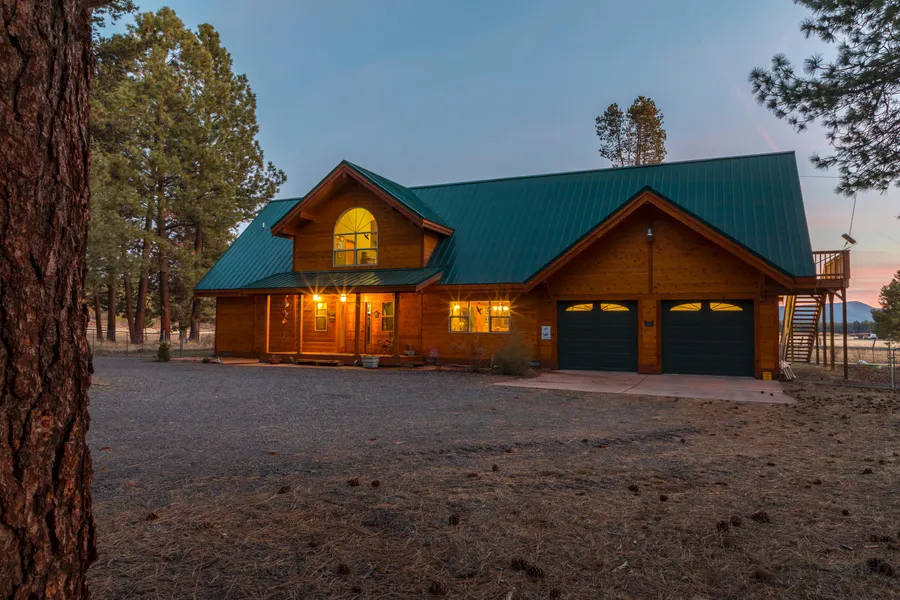 This custom built 3531 sq ft home with attached 2 car garage sits on 5.3 acres with 36'x36' Barn/Corral, Pasture, Dog Kennel, Green House plus raised Garden Beds. Property borders Forest Service. Home entry has wood accented tile floors vaulted ceiling w/knotty pine beams. Warm cozy open floor plan. Mountain views from Living Room & has certified wood stove that sits in front of stone wall with Juniper Mantels. Living Room flows into open Kitchen with Borror cabinets, a center island large enough for 20 pies, propane stove, electric and convection ovens, long breakfast bar with 6 custom bar stools. Master bedroom/suite located main floor, w/beam ceiling, walk-in closet, large bathroom. Upstairs two bedrooms with walk-in closets full bath. Large loft doubles as office area with grand views out floor to ceiling windows. Great room upstairs west end of house is ideal area for large family g...