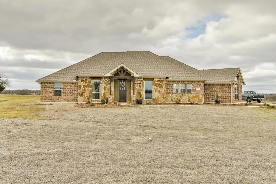 This 2014 custom built home sits on 2 acres with the convenience of being minutes from I-35 and Sanger, while still having the country feel with open, rolling hills and beautiful sunsets to the west. There is a home office, doubling as a formal dining area, & open media room across the hall. This flows into kitchen, breakfast area and living room. The spacious kitchen has custom, soft close, stained cabinets, and granite countertops. The stainless steel GE appliances include an induction stovetop, convection oven & microwave and refrigerator, with an island for prep and serving. The covered back patio boasts a Lynx infrared grill, mini fridge and beautiful views. Two bedrooms share a separate guest bath with shower tub combo. Laundry room with GE Washer and Dryer, sink and double cabinets. The master boasts a luxurious bathroom, walk-in closet, and safe room. 2 car garage. Wood flooring, tile and New carpet, ALL appliances convey. Buyer or agent to verify all information.