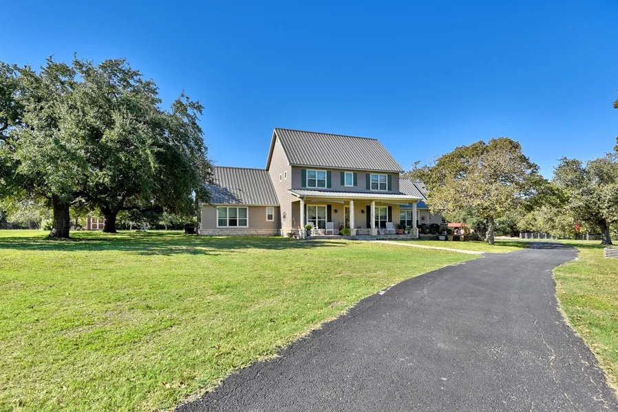 Discover a rare opportunity to own this sprawling estate in charming Flatonia, TX with custom-built, 4-bedroom, 3-bathroom, 2862 sf home. Set on over 8.6 maintained acres, this property blends privacy, elegance and natural beauty. The grounds feature stocked (Catfish & Bass), aerated ponds and a blend of pastures and woods, with Hog Branch Dry Creek meandering through, adding a unique charm to the landscape.