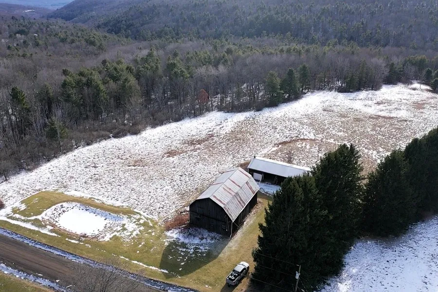 Take advantage of the existing structures, including a 90 x 24 pole barn with a small, insulated space on a poured slab, perfect for warming up after a day exploring the land. The second barn, a post-and-beam structure built at the turn of the century, adds character to this property. Behind the barn, an 8-acre field provides ample space for grazing or fo...