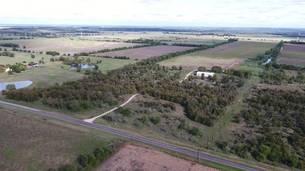 Improvements on the property include an all-weather access road made of caliche, new boundary fencing in areas, and several new fenced-in pen areas that would work well for cattle, pigs, horses, or goats. A 50x100 foot barn was recently built in 2016. This barn has a concrete slab and could be used for storage of equipment, and a portion is rough-plumbed and ready to be utilized as a barndominium if desired. The options are endless. It has 3 large roll up doors, 2 access doors, and there is extra material to add a lean-to on the side for equipment. Power has been run to the property, and there is a water well that is ready to use. There's an old cistern as well. A concrete pad was recently installed for silos, and 3 silos may be available to convey with the sale. A new pond is in place, and was stocked with channel catfish--this also provides water for livestock and wildlife alike.